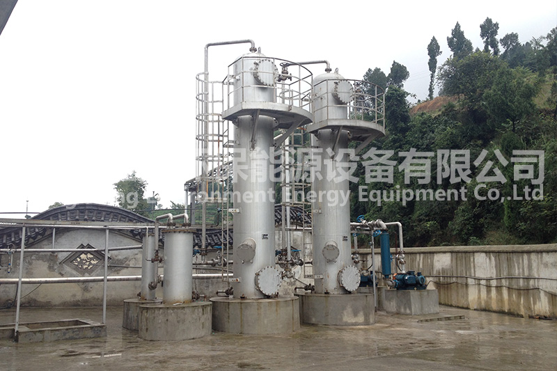 沼氣中含有大量的粉塵、污泥、水分、雜質及毒害性氣體(如HCl,H2S,NH3),為達到設備利用要求或環保排放標準,需要對原料氣中的氣體進行預處理,如增壓、脫硫、脫水、除塵等。